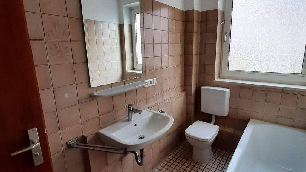 Das Tageslichtbad verfügt über eine Badewanne und einen Waschmaschinenanschluss. Zudem gehört zur Wohnung ein Kellerabteil.