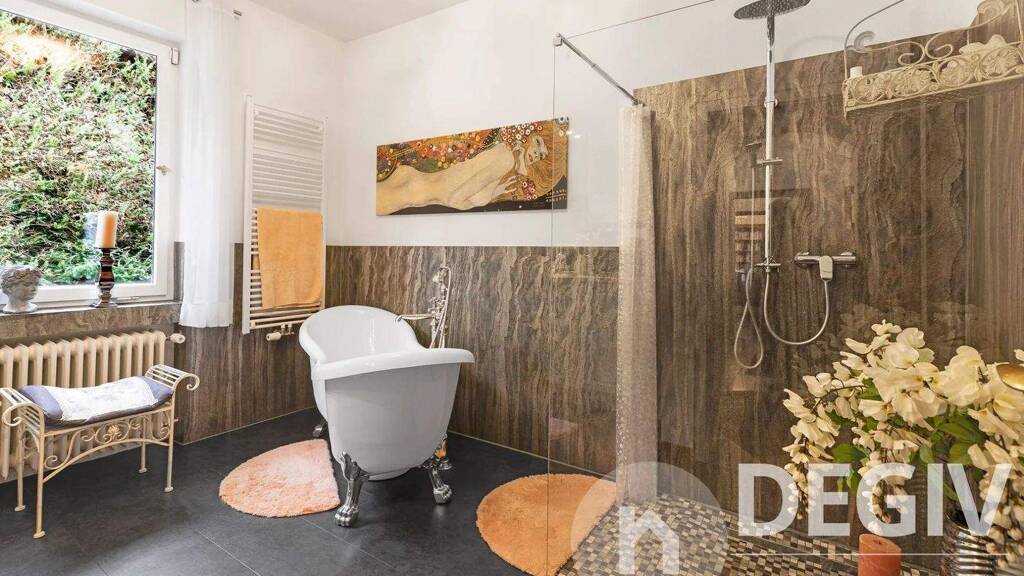 + Bodenbeläge: Jura Marmor im Wohn-/Essbereich und Treppenhaus + Fenster in Sipo-Holz, antike Bleiverglasung im Esszimmer und Treppenhaus + Innentüren in französischem Nussbaum + Bauhaus-Türgriffe, Messing-Fenstergriffe + Holz-Rolladen, MHZ-Markisen innen, Außenmarkisen vor Schlafzimmern + Eingangsbereich mit Edelputz + Indoor-Schwimmbad (5x10m) mit Wärmepumpe (max. 29°C) + Sauna und Fitnessraum + 26 Solarmodule auf Dach (8 kWp Photovoltaikanlage) + Elektrik-Schaltkasten erneuert + Smart Home-Ausstattung (50 Objekte: Heizkörper-/Raumthermostate, Fenstersensoren, Feuermelder) + Neue Küche mit Markengeräten + 2 Bäder kernsaniert + Zusätzliche 15 cm Unterdach-Wärmeisolierung + Neue Balkon- und Außentreppen-Wasserisolierung + 6 neue Heizkörper, 2 Handtuch-Heizkörper, neue Umwälzpumpen + 2 neue Dachfenster, neue Isolier-Fensterscheiben + Innen und außen neuer Anstrich + Garten: Einzäunung (hundefest), Bewässerungssystem, 1000l Wasserreservoir + Schwimmbad: neue Verfugung, Reinigungsroboter, neuer Lüfter, Wärmepumpe