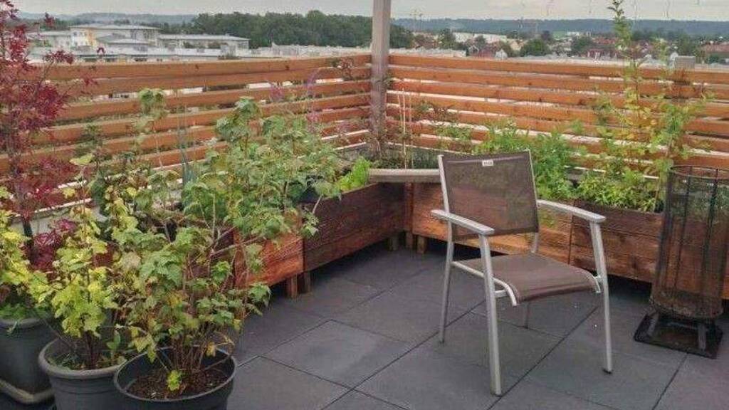 Die Wohnung erstreckt sich über zwei Etagen mit einer Wohnfläche von ca. 125,61 m² sowie einer großzügigen Dachterrasse mit ca. 45 m² und einer zusätzlichen, kleinen Terrasse mit ca. 8 m². 2021 wurden neue Fenster und Terrassentüren eingebaut, 2020 wurde eine Klimaanlage installiert. Auf der Dachterrasse befinden sich eine Gartenhütte inkl. Sauna und ein überdachter Sitzbereich. Zur Wohnung gehören 2 Kellerabteile und ein überdachter Parkplatz. Parkplätze im Freien sind zusätzlich vorhanden. Es gibt Grünflächen, die für die Allgemeinheit nutzbar sind, inkl. Spielplatz.