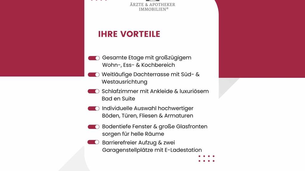Diese Immobilie überzeugt durch lichtdurchflutete Räume, hochwertige Ausstattung und intelligente Raumaufteilung. Die großzügige Dachterrasse macht sie zur ersten Wahl für alle, die außergewöhnlichen Freiraum und gehobenes Wohngefühl schätzen.