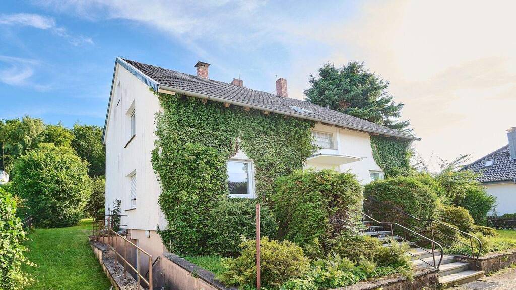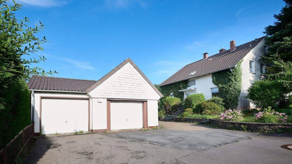 Ein Zuhause mit vielen Möglichkeiten: Dieses großzügige Haus in zentraler Lage des wunderschönen Detmolder Ortsteils Hiddesen vereint Flexibilität, Ruhe und ein äußerst angenehmes Wohnumfeld. Es umfasst zwei separate Wohnungen und eignet sich damit ideal sowohl für die Nutzung als Einfamilienhaus als auch für ein komfortables Mehrgenerationenwohnen. Das Gebäude ist vollständig unterkellert und bietet damit reichlich Stauraum sowie zusätzliche Nutzflächen. Zwei Garagen sowie drei weitere PKW-Stellplätze im Freien sorgen für hervorragende Parkmöglichkeiten. Hinter den Garagen steht zudem eine große, praktische Fläche bereit, um Gartengeräte oder andere Utensilien bequem unterzubringen.