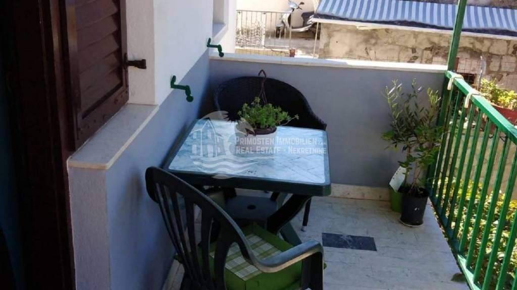 Die Gartenfläche beträgt 59 m², der Balkon 5 m², die Außenterrasse der oberen Wohnung 3 m² und der Abstellraum 5 m². Der Flughafen Split/Trogir ist nur zehn Autominuten entfernt.