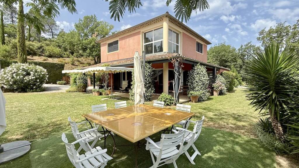 The 2.14 hectare plot is planted with Provencal trees. The surroundings of the house are beautifully landscaped, notably with beautiful olive trees. A vast covered veranda-style terrace, a heated swimming pool secured by an electric shutter, and a pool house enhance the house.