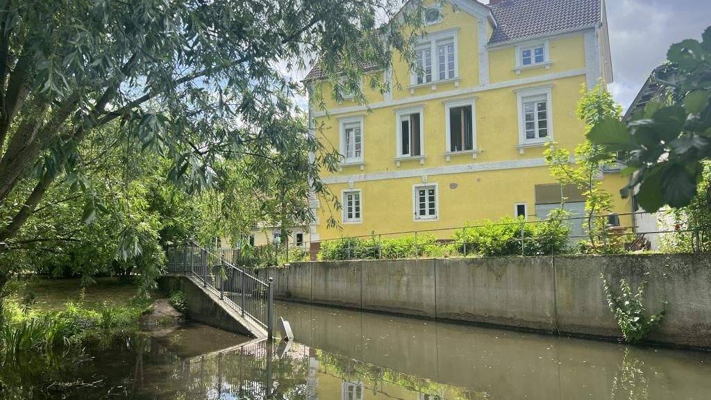 Der Außenbereich mit seiner naturnahen Gestaltung und der direkten Lage an einem kleinen Bach (Floßbach) lädt zur Neugestaltung ein.