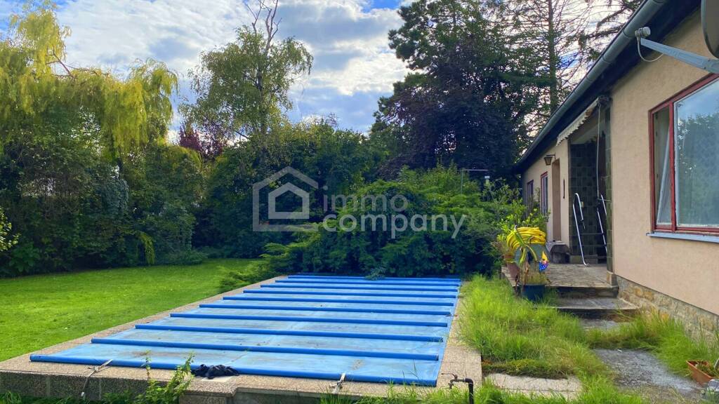 Dieses romantische Einfamilienhaus wurde aus einem alten Bauernhaus entwickelt und befindet sich freistehend in einem uneinsehbaren Garten. Eine als absolute Ruhelage zu bezeichnende Position am Rand einer Wohnsiedlung ohne Durchzugsverkehr gewährleistet ein Wohnerlebnis der besonderen Art. Im Erdgeschoß befinden sich 5 Zimmer, die mit etwas Zuwendung zu einer vielfältig nutzbaren Dimension entwickelt werden können. Im Obergeschoß befinden sich zwei Schlafzimmer und ein noch nicht ausgebauter Dachboden in beeindruckender Dimension. Auf der Gartenseite befindet sich eine uneinsehbare Terrasse die den freien Blick auf den eigenen, ausschließlich von weiteren Gärten umschlossenen Garten eröffnet. Vor der Terrasse befindet sich uneinsehbar ein großzügiges Swimmingpool. Ein Altbaumbestand bietet Schatten vor der Fassade. Das Grundstück ist über eine gesonderte Zufahrtsstraße zu erschließen und befindet sich derzeit in Teilung.