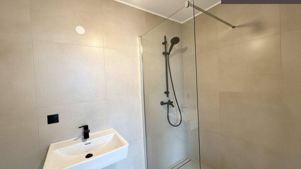Die hochwertige Ausstattung umfasst Echtholzparkett, großformatiges Feinsteinzeug, elegante Sanitärkeramik von Laufen, Hansgrohe-Armaturen, Fußbodenheizung, Wärmepumpentechnik, Verdunkelungsrollos sowie eine stylishe, moderne Elektroinstallation.