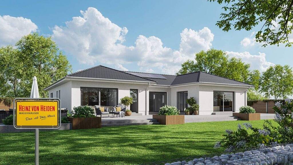 Mit jedem m² versprüht dieses Haus Lebensfreude und Exklusivität. Dieser Bungalow hat ein besonderes Highlight zu bieten: einen 10 m² großen überdachten Außenbereich. Freuen Sie sich auf schöne laue Sommerabende mit Blick auf Ihren Garten. Egal, ob Sie sich bei den Entscheidungen für die Ausgestaltung Ihres Traumhauses von Ihrem Bauchgefühl, dem Herz oder dem Kopf leiten lassen, Ihr persönlicher Heinz von Heiden Bauherrenfachberater steht Ihnen von der Planung bis zur Schlüsselübergabe beratend zur Seite. Bauen Sie Ihren Winkelbungalow mit 130 m² nur mit unseren Experten! Die Abbildung zeigt eine Ausstattungsvariante.