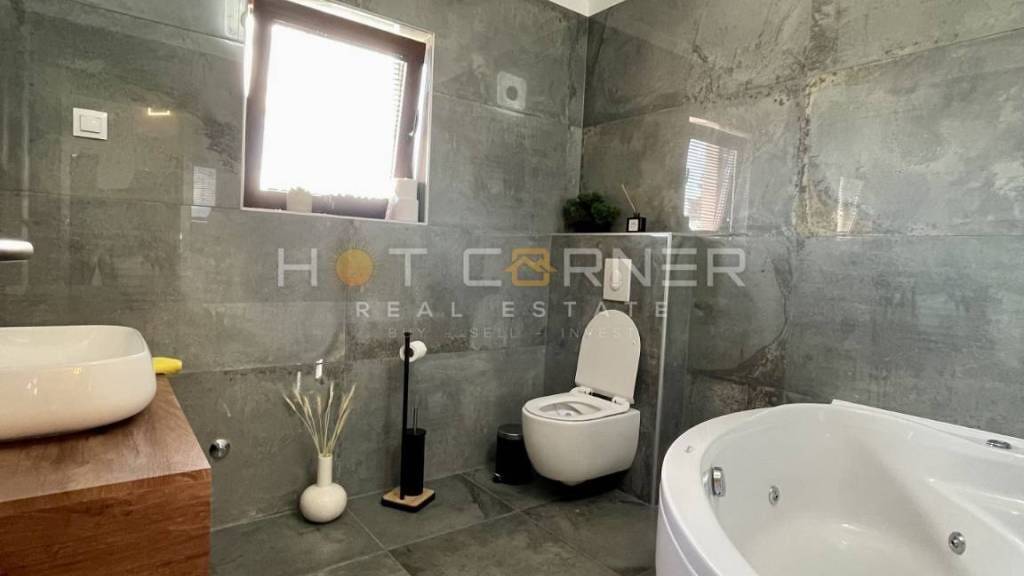 Die im Jahr 2021 erbaute Villa befindet sich auf einem Grundstück von 535 m² und besteht aus dem Erdgeschoss und dem ersten Stock. Der Zugang zur Villa erfolgt über eine überdachte Terrasse. Das Erdgeschoss verfügt über ein geräumiges Wohnzimmer mit Küche, Flur, Abstellraum und Badezimmer mit Dusche. Eine Treppe führt in den ersten Stock mit einer Eingangshalle, in der sich ein Loungebereich, drei Schlafzimmer, eine Toilette mit Badewanne und ein Ankleidezimmer befinden.