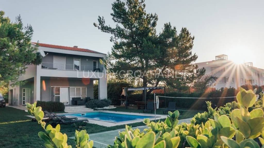 Hier steht eine moderne Strandvilla mit Pool in der Region Zadar Nin in Kroatien zum Verkauf, die nur etwa 150 Meter vom wunderschönen Sandstrand entfernt ist!