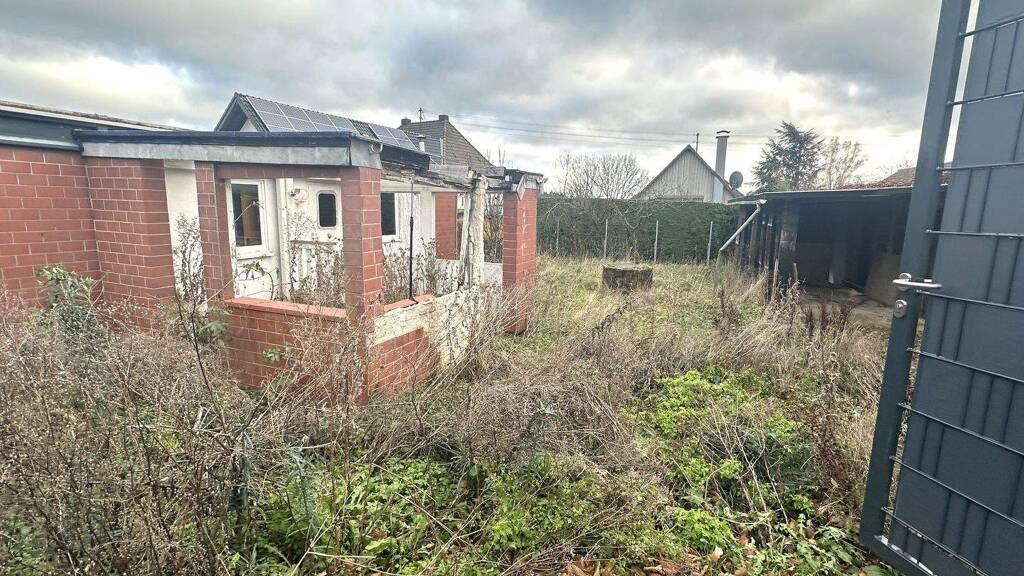 Bebaut ist das Grundstück derzeit mit einem kleinen Haus, mit etwa 35 m² Wohnfläche, aufgeteilt in ein Schlafzimmer, Badezimmer, Flur und eine Wohnküche (vermutlich Container-Bauweise). Seitlich gibt es einen Stellplatz. Gemäß der vorliegenden Skizze ist das Jahr des Aufbaus ca. 1999. Die Beheizung erfolgt über Strom und kleinere Heizgeräte, Wasser und Abwasser sind (soweit zu erkennen) vorhanden. Für eine einzelne Person, Selbstversorger, Aussteiger oder als Wochenendhaus eine wunderbare Option. Der Garten selber ist naturbelassen. Der Wert ist hier das wunderbare Grundstück, zur Straßenseite eingezäunt und blickdicht, mit Tor.