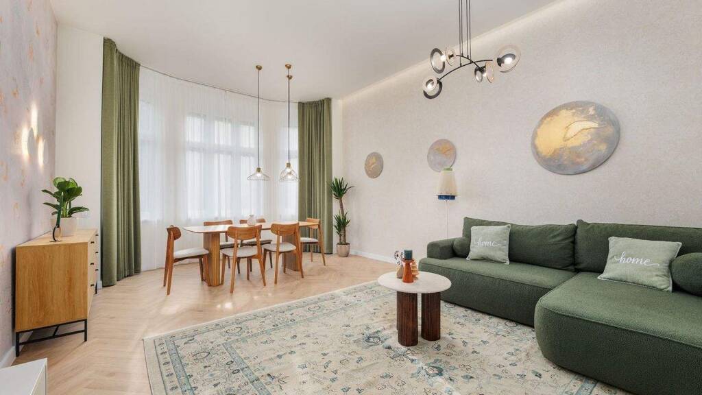 Auf Wunsch können die vom Innenarchitekten geplanten modernen Möbel, Küchengeräte sowie Fernseher ebenfalls übernommen werden. Kaufpreis: 26 000 EUR