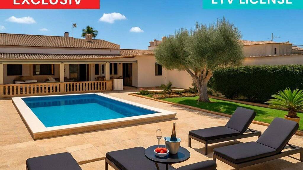 Refugio mediterráneo con licencia ETV y potencial de ampliación en Ses Salines.Precio: 1 450 000 EUR.Bienvenido a su paraíso personal en el soleado sur de Mallorca, en el pintoresco pueblo de Ses Salines, a solo unos minutos de playas de ensueño y de la playa natural de Es Trenc..Esta encantadora propiedad de alta calidad combina el estilo mediterráneo con un enorme potencial de revalorización. En una parcela de 680 m² con un cuidado jardín mediterráneo, un olivo centenario y mucha privacidad, le espera una vida en armonía con la naturaleza, pero con el máximo confort..El corazón de la propiedad es la gran zona de piscina con un elegante borde de piedra natural, modernas tumbonas negras, una elegante zona de descanso y una soleada terraza orientada al sur que invita a relajarse y disfrutar. Un detalle especial: la zona de barbacoa independiente en una pequeña caseta de piedra natural, perfecta para largas tardes de verano con amigos y familiares..________________________________________.Datos y aspectos destacados de un vistazo:. Superficie construida: aprox. 404 m². Superficie del terreno: aprox. 680 m². Licencia ETV para alquiler vacacional: posibilidad de obtener altos ingresos. Certificado de habitabilidad disponible. 3 amplios dormitorios dobles con armarios empotrados. Modernos sistemas de aire acondicionado con bomba de calor en todas las habitaciones. Cocina grande y totalmente equipada con mucho espacio de almacenamiento. Entrada tradicional mallorquina con elementos de piedra natural. Salón con acceso directo a la terraza. Garaje doble con acceso tanto a la casa principal como a:.o un apartamento independiente para invitados con baño y terraza. Lavadero con potencial para convertirlo en otra zona de estar. Planta superior en bruto con aprox. 120 m² de superficie habitable adicional, ideal para otro apartamento con acceso independiente.________________________________________.Una joya con potencial de futuro.La propiedad se encuentra en muy buen estado, tiene una construcción sólida y se puede modernizar con un esfuerzo razonable. La planta superior, en estado bruto, ofrece espacio adicional para otro apartamento independiente con entrada separada, ideal para invitados o para alquilar durante las vacaciones..La ubicación, la licencia y el potencial de ampliación hacen de esta propiedad una verdadera joya oculta en el mercado de Ses Salines. Quienes conocen la región saben apreciar el precio y las posibilidades de esta propiedad..________________________________________.Póngase en contacto con nosotros para concertar una visita y déjese seducir por este refugio mediterráneo con encanto, potencial y un rentable concepto vacacional..