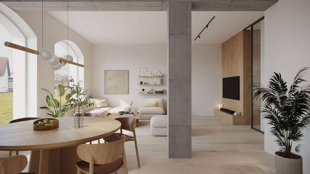 Das kleine Mehrfamilienhaus, mit Satteldach und Gauben, wurde in Massivbauweise errichtet. Ursprünglich war das Loft eine gewerbliche Ladenfläche. Sie wurde zu Wohnzwecken umgewidmet. Im Dezember 2019 wurde eine neue Heizung installiert. Im Loft ist der Boden aktuell gefliest und es sind Kunststofffenster eingebaut.