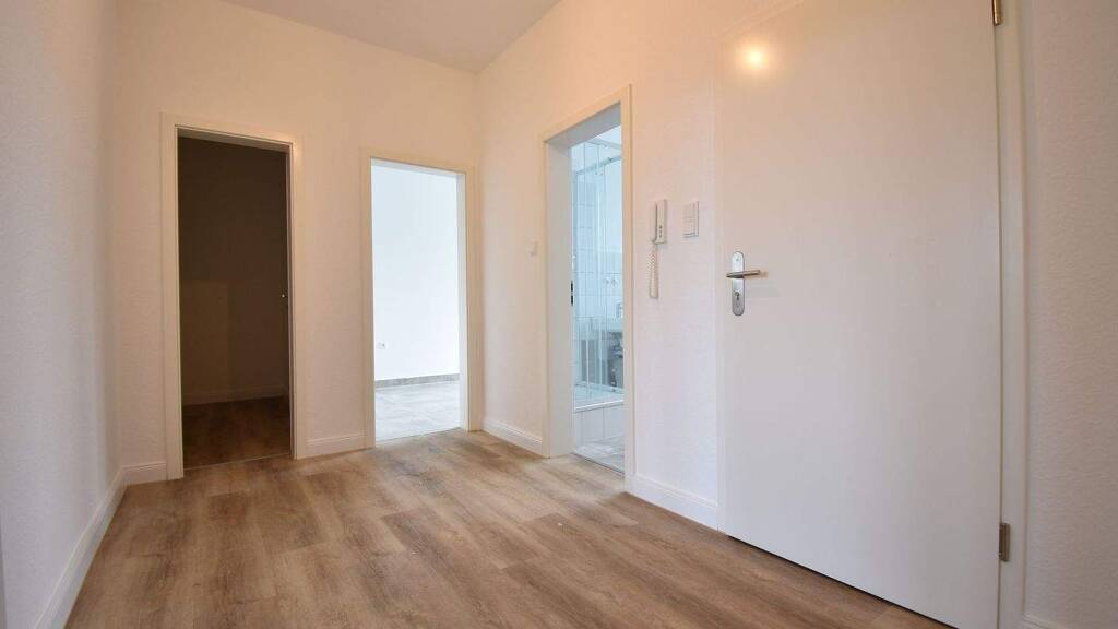 Bei der angebotenen Immobilie handelt es sich um eine renovierte 3-Zimmer-Wohnung, gelegen im 4. Obergeschoss in der Essener Innenstadt. Die Einheit können Sie bequem über den Aufzug erreichen. Wenn Sie die Einheit betreten, stehen Sie zunächst einmal in der geräumigen Diele, wo Sie leicht eine Garderobe integrieren können. Das Wohnzimmer fungiert als Durchgangszimmer zu den beiden Schlafzimmern, welche ähnlich groß geschnitten sind. Eine WG-Nutzung wäre also auch denkbar. In der Küche haben Sie Platz für Ihre eigene Einbauküche. Angrenzend befindet sich das Badezimmer, welches mit einer Dusche ausgestattet ist und über einen Anschluss für die Waschmaschine verfügt. Insgesamt die ideale Immobilie für Familien!