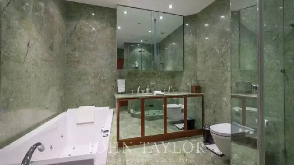 Une salle de bains supplémentaire et des toilettes invités avec douche, ajoutant une touche de fonctionnalité et de sophistication à cet espace de vie exclusif.