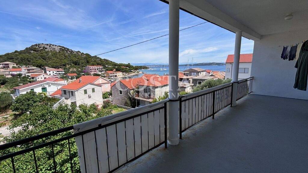 Auf der Insel Vrgada in Dalmatien steht ein geräumiges Haus mit Meerblick zum Verkauf. Das 300 m² große Gebäude befindet sich auf einem 723 m² großen Grundstück und besteht aus Keller, Erdgeschoss und Obergeschoss. Im Keller befinden sich ein Abstellraum und der Heizraum. Im Erdgeschoss befindet sich eine Wohnung mit Wohnzimmer, separater Küche, drei Schlafzimmern, Bad, Terrasse und einem Abstellraum. Das Obergeschoss mit separatem Eingang bietet einen offenen Essbereich, eine Küche, drei Schlafzimmer, ein Bad und eine Terrasse mit beeindruckendem Meerblick. Beide Etagen sind klimatisiert. Im Innenhof befinden sich ein Garten und ein Nebengebäude mit Geräteschuppen. Das Haus ist in einem sehr guten Zustand und sofort bezugsfertig.