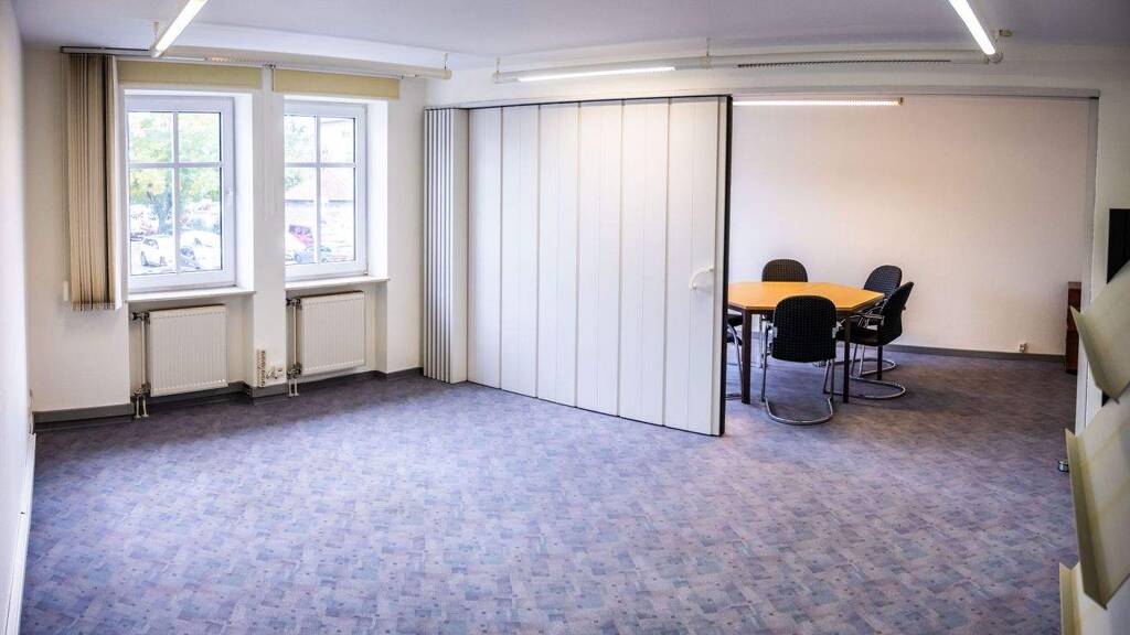 Die Aufteilung umfasst einen großen Eingangsbereich mit Anmeldung, einen großzügigen Besprechungsraum mit praktischer Faltwand, separate Telefon- und Aufenthaltsräume, Teeküche, Material- und Archivfläche, sowie zwei weitere Büroräume, die sich beispielsweise zur Untervermietung eignen. Herren- und Damentoilette sind selbstverständlich vorhanden. Ergänzt wird das Angebot durch zwei abschließbare Kellerabteile für zusätzlichen Stauraum.