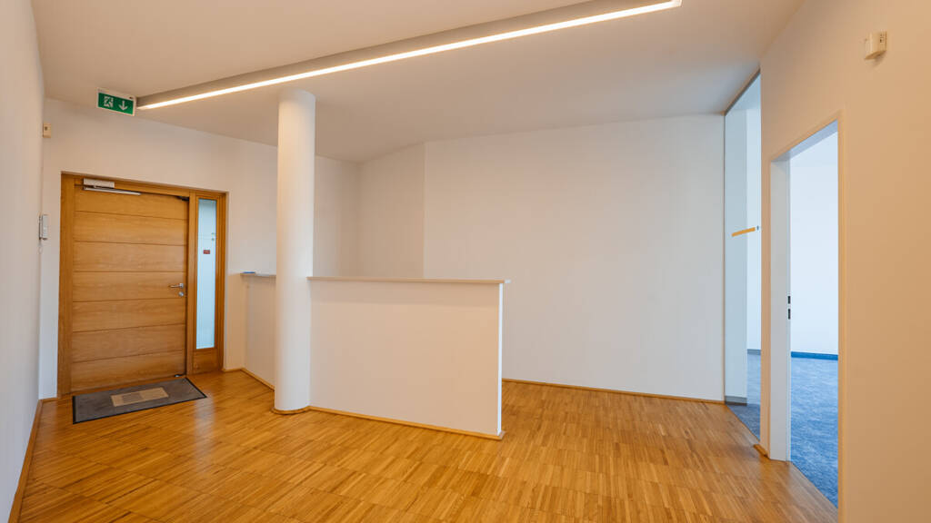 Ein stilvoller Eingangsbereich heißt Kunden und Besucher willkommen und hinterlässt einen positiven ersten Eindruck. Die mietbare Fläche besteht aus mehreren lichtdurchfluteten und geräumigen Zimmern, die sowohl eine angenehme Arbeitsatmosphäre als auch eine hohe Funktionalität bieten.