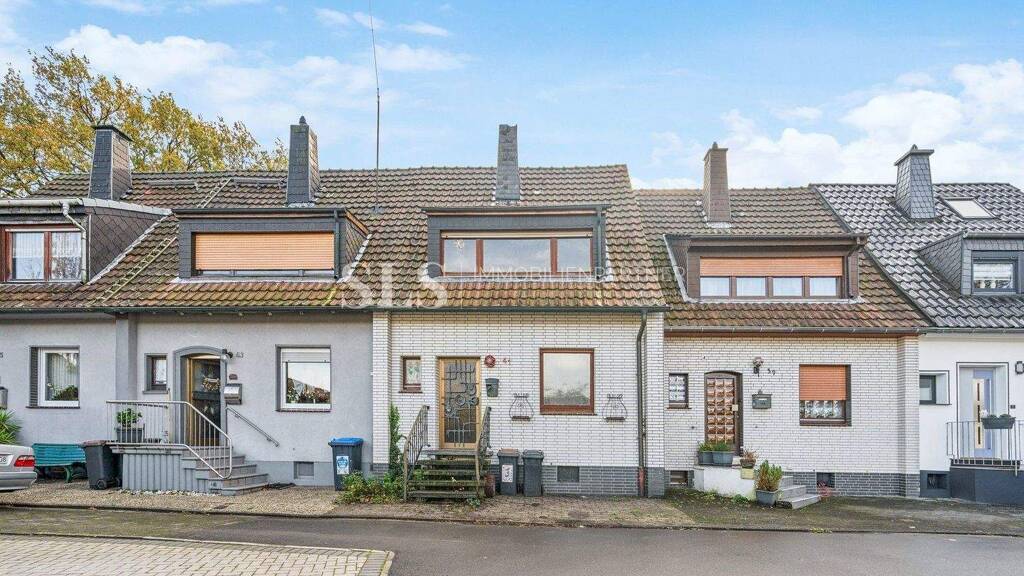 Das Reihenmittelhaus aus dem Jahr 1958 befindet sich in einer ruhigen und gepflegten Siedlung in Marl-Brassert. Viele Nachbarhäuser desselben Typs wurden in den vergangenen Jahren bereits modernisiert, wodurch sich ein harmonisches und ordentliches Straßenbild ergibt. Das Haus selbst erfordert eine vollständige Kernsanierung.