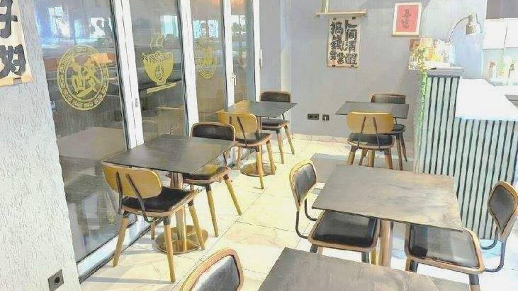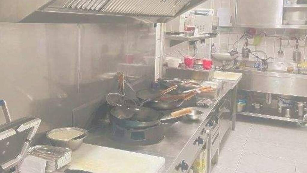 1 moderne Theke + 1 Gastroherd via 3 Wok-Gasfelder + 1 Gastro-Dunstabzugshaube + 1 gewerblich zulässige, bis über das Objekt führende, Abluft-Flöte + 1 Werbeanlage an der Hauswand.
