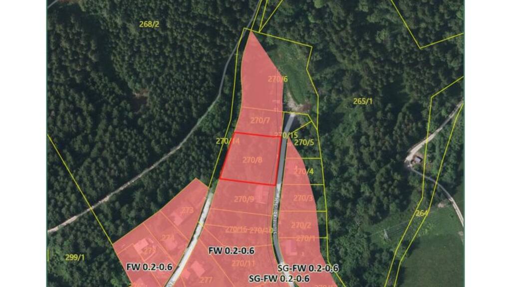 Das zur Gänze als FW - Ferienwohngebiet gewidmete Bauland verfügt über eine vorgeschriebene Bebauungsdichte von 0,2 - 0,6 sowie 2 separate Zufahrtsmöglichkeiten (Gemeindestraßen) am östlichen und westlichen Ende des Grundstücks.
