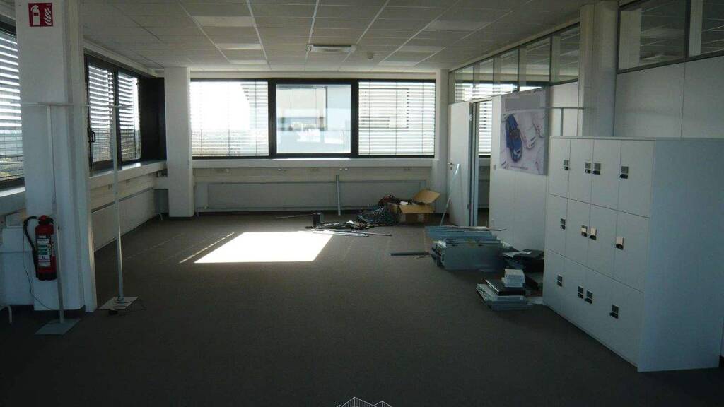 In hervorragender Sichtlage unmittelbar am Zubringer zur BAB A5-Anschlußstelle Karlsruhe-Süd kommt diese helle Büroetage im III.OG mit integrierter Küchenzeile und ca. 373 m² zur Vermietung. Sie besteht im Wesentlichen aus einem open-space Bereich, einem kleineren Besprechungsraum und einem separaten Büro mit ca. 50 m². Die Erschließung erfolgt über ein dezentrales Treppenhaus, einem 5-Personen- bzw. 1,5 to-Lastenaufzug. Die jetzige Einteilung entspricht den Wünschen des Vormieters. (Grundrisse) Aufgrund des praktischen 5m-Raster kann eine weitere Unterteilung problemlos erfolgen. Separate Toilettenanlagen sind auf dem Geschoss vorhanden. Ebenso bereits eine CAT-7 Verkabelung. Die Anmietung kann kurzfristig nach Vereinbarung erfolgen. Kfz-Stellplätze stehe auf dem Areal ausreichend zur Verfügung und können zu 25,00 €/Stck zzgl. gesetzl. MwSt. zusätzlich angemietet werden. (Im Kellergeschoß eines Nachbargebäudes stehen ggf. weitere Archivräume optional zur Verfügung.) Ferner kann die Betriebskantine im Hauptgebäude von Mitarbeitern genutzt werden.