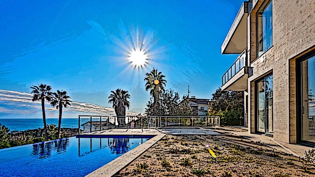 A spacious living room, combined with an open-plan kitchen, with an exit to the balcony with a gorgeous view of the sea, the city and the surrounding hills, immersed in the greenery of Mediterranean pines and palm trees. Bedroom with an exit to the balcony. Bathroom. Garage for 2 cars.