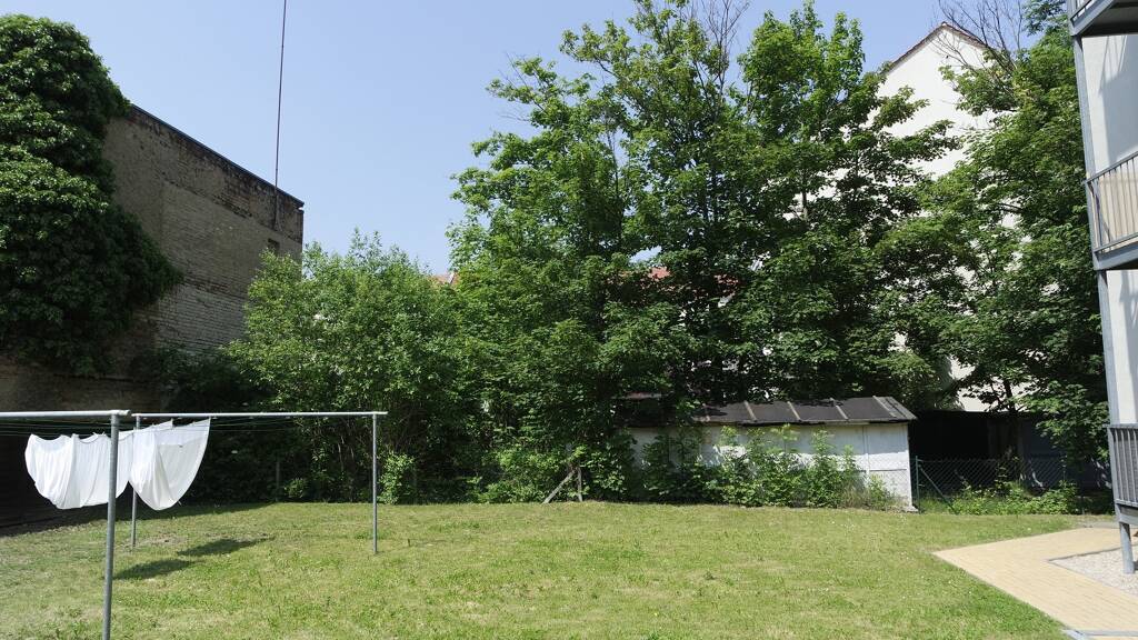 Saniertes Mehrfamilienhaus in ruhiger Seitenstraße mit großem grünen Mietergemeinschaftsgarten.
