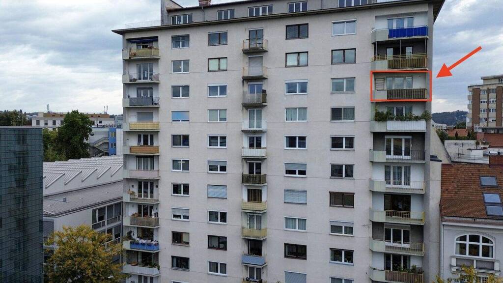 Diese moderne 2,5-Zimmer-Wohnung im 9. Obergeschoss (mit Lift) eines gepflegten Mehrparteienhauses überzeugt durch ihre hochwertige Sanierung, die durchdachte Raumaufteilung und die zentrale Lage direkt neben der Technischen Universität Graz.