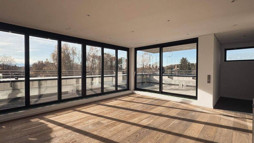 Das Penthouse ist Teil eines Neubauprojekts, das insgesamt 17 hochwertige Wohnungen umfasst. Es verfügt über drei große Schlafzimmer, ein Arbeitszimmer, zwei Bäder, einen Abstellraum und ein großes Wohnzimmer mit offener Küche. Dank des großzügigen Balkons, welcher die komplette Wohnung umrundet, genießen Sie lichtdurchflutetes Wohnen mit atemberaubendem Ausblick.