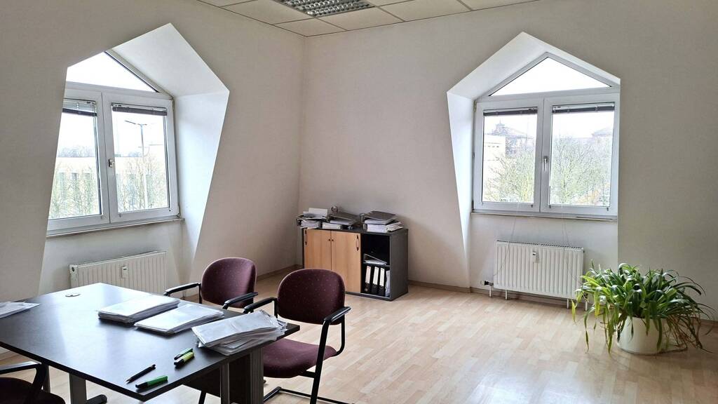 Die Bürofläche umfasst insgesamt 3 Zimmer, die vielseitig genutzt werden können. Die Räumlichkeiten bieten ausreichend Platz für verschiedene Arbeitsbereiche und lassen sich individuell gestalten. Gaubenfenster sorgen für eine helle Arbeitsatmosphäre und schaffen eine angenehme Arbeitsumgebung.