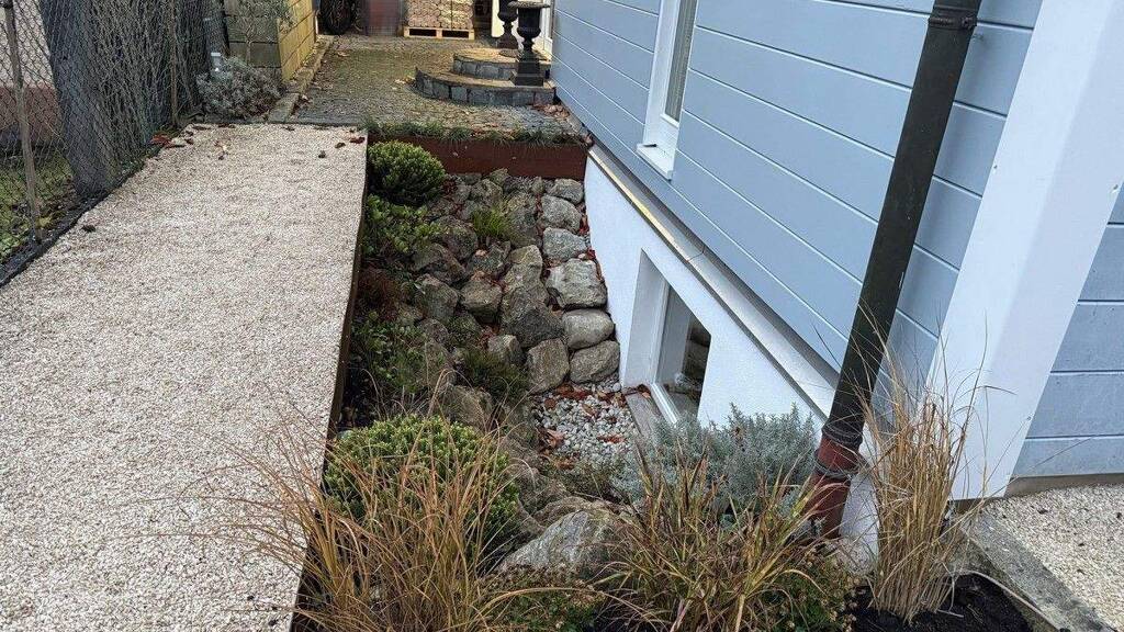 Das Grundstück präsentiert sich als private Wohlfühloase. Der großzügig angelegte Außenbereich bietet einen beheizbaren Pool (inkl. Gegenstromanlage, 2023 installiert), der vollautomatisch über Salzelektrolyse (ohne Chlor) desinfiziert, gereinigt und betrieben wird. Im Garten befinden sich moderne, handgefertigte Blumenkästen und Elemente aus Cortenstahl. Mehrere Terrassen- und Grünflächen schaffen Rückzugsorte für Entspannung oder gesellige Stunden im Freien.