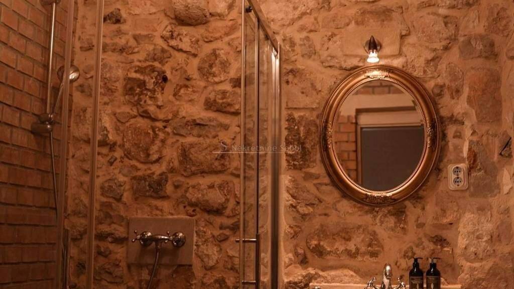 A completely new stone facade was made, joinery-windows, shutters and doors are made of Siberian larch. The staircase is one-sided, reinforced concrete, treated with wood and a beautiful wrought iron fence. Quality mosquito nets are installed on all windows. The interior of the house is a combination of natural stone, brick, wood and cement plasters painted white.