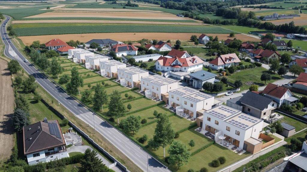 Am Rande der Gemeinde Zemendorf entsteht das Nachhaltige KlimaAktiv Projekt - Wohnen am Blütenweg mit 3 hochmodernen bezugsfertigen Doppelhäusern - 6 Einheiten - (inkl. DAN Küche & Bosch Geräte) in der Größe von ca. 109 m² Wohnfläche + 181m² ebenen Eigengarten mit einer 27m² Terrasse.