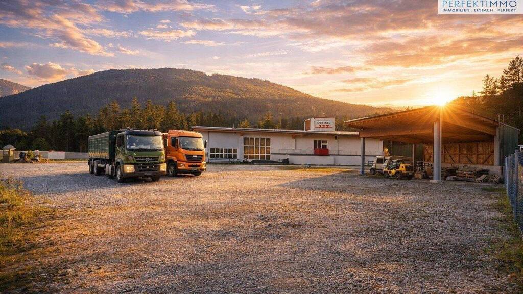 Der befestigte, ebene Platz eignet sich ideal für Unternehmen mit großen Fahrzeugen oder umfangreicher Logistik, wie etwa Bau- und Transportunternehmen, Bus- und LKW-Betriebe, Fuhrparks, Montagefirmen oder vergleichbare Gewerbebetriebe. Dank der direkten Zufahrt von der Bundesstraße sind auch größere Fahrzeuge wie Reisebusse oder LKW problemlos manövrierbar, großzügige Rangier- und Abstellflächen sind gegeben. Ein teilweise überdachter Bereich ermöglicht zudem eine wettergeschützte Lagerung von Materialien oder Fahrzeugen. Ein Stromanschluss ist vorhanden und erweitert die Nutzungsmöglichkeiten zusätzlich.