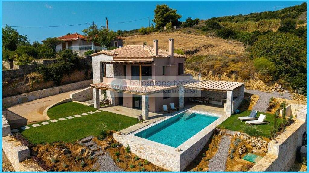 Charmante Neubauvilla mit Pool und herrlichen Blick auf den Messenischen Golf, in exzellenter Lage!