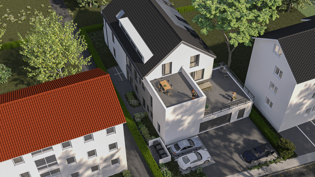 Sicherheit und LebensqualitĂ€t: Moderner Neubau mit durchdachter Architektur, ruhigen WohnflĂ€chen und gemeinschaftlich gestalteten GrĂŒn- und FreirĂ€umen â ideal fĂŒr entspanntes Wohnen.