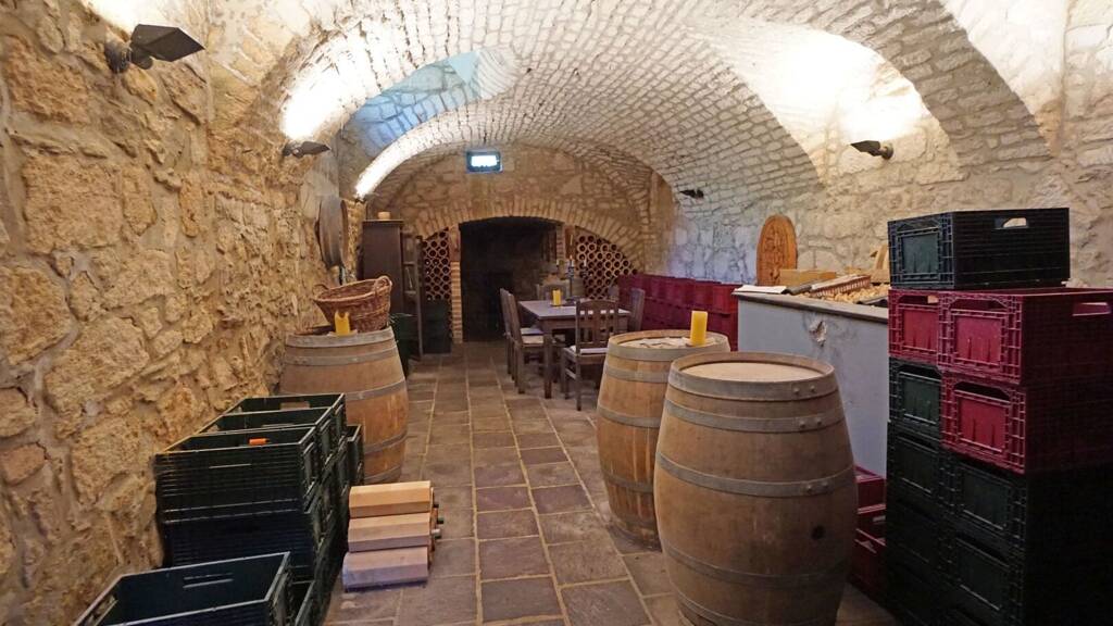 Ca. mittig des Grundstückes befindet sich ein wahres Juwel! Ein "Weinhaus" mit historischem Gewölbe-Weinkeller mit Verkostungstisch und Weinpresse aus ca. 1834. Über dem Keller liegt eine ca. 40 m² kleine Gästewohnung mit Bad, WC, Schlafraum, Küche, Wohn-Essraum und Terrasse mit Brunnen.