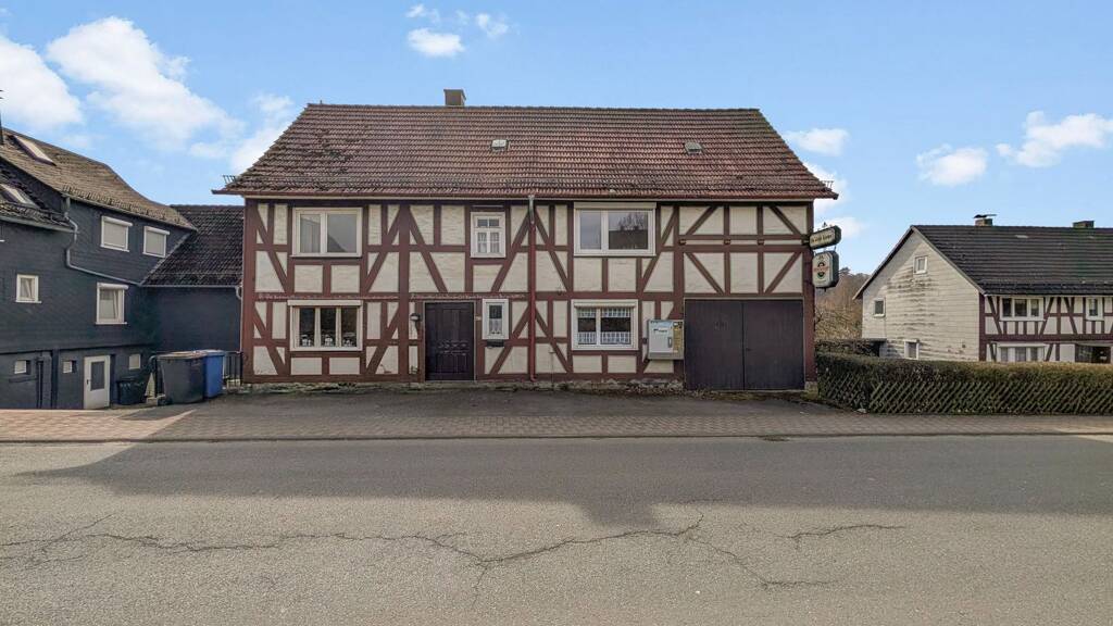 Wohnen und Arbeiten unter einem Dach - hier können Sie Ihre Träume verwirklichen! Zum Verkauf steht ein charmantes Einfamilienhaus mit kleiner Gaststätte auf einem großzügigen Grundstück in zentraler aber dennoch idyllischer Lage von Hatzfeld (Eder). Viel Potenzial für individuelle Gestaltungsmöglichkeiten erwartet Sie! Die Immobilie befindet sich in einem sanierungsbedürftigen Zustand und bietet daher eine ausgezeichnete Gelegenheit für eine umfassende Renovierung und Umgestaltung nach Ihren Wünschen und Bedürfnissen. Entdecken Sie die zahlreichen Nutzungsmöglichkeiten sowohl als großzügiges Einfamilienhaus als auch als Zweifamilienhaus - ideal für Mehrgenerationenwohnen oder zur Vermietung.