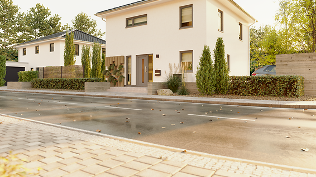 Die kubische Form ist der Klassiker im Stadthausdesign und prägt auch das Aussehen unseres Stadthaus Flair 124. Im Inneren setzt sich der urbane Stil fort: der großzügige Wohn- und Essbereich erstreckt sich über die gesamte Hausbreite und ist das Herzstück des Hauses. Große Fenster lassen viel Tageslicht hinein und führen gleich hinaus zu Ihrem Wohnzimmer im Grünen – der Terrasse.