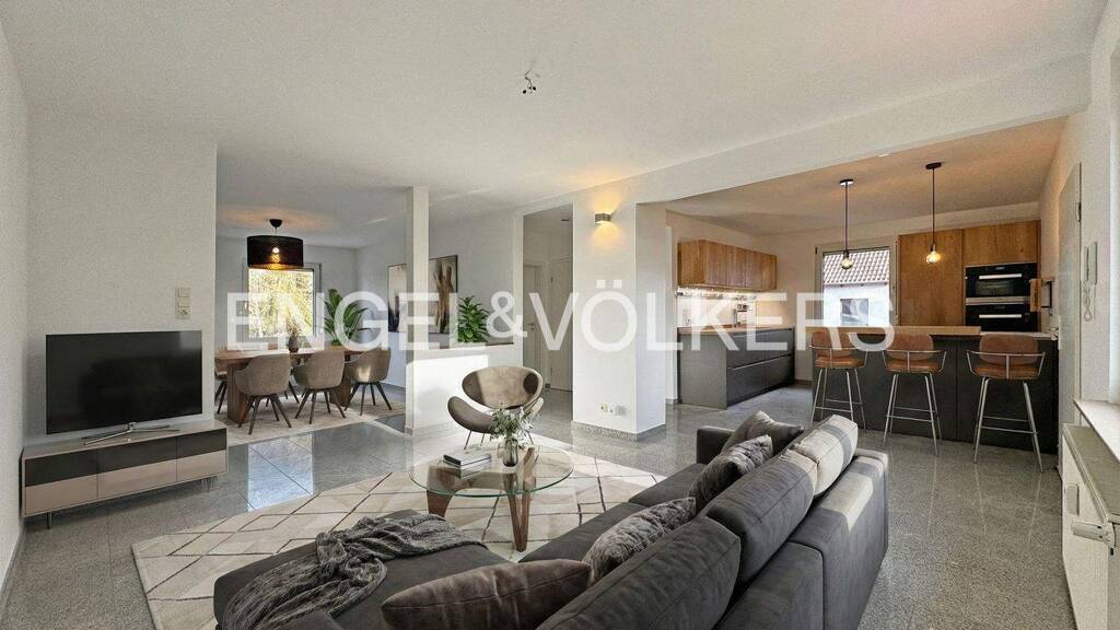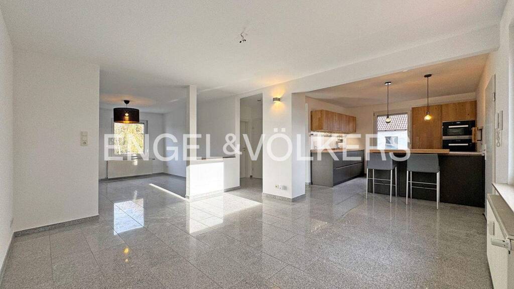 Diese außergewöhnliche Maisonette-Wohnung besticht durch ihre zentrale Lage in Niddatal-Ilbenstadt und vereint zeitgemäßen Wohnkomfort und eine hochwertige Ausstattung. Sie erstreckt sich über das erste und zweite Obergeschoss eines gepflegten Zweifamilienhauses und wurde im Jahre 2019 umfassend renoviert, sodass sie in einem modernen und zeitgemäßen Zustand erstrahlt. Dank der hervorragenden Verkehrsanbindung erreichen Sie Frankfurt und andere umliegende Städte bequem und schnell. Beim Betreten des ersten Obergeschosses erwartet Sie ein großzügiger, offener Wohn- und Essbereich, der ideal für geselliges Beisammensein oder entspannte Stunden gestaltet wurde. Hier finden sowohl eine große Essecke als auch eine gemütliche Sitzecke problemlos Platz. Highlight dieser Ebene ist die hochmoderne Einbauküche der renommierten Marke Leicht. Die Arbeitsplatte aus Naturstein, neuwertige Elektrogeräte von Miele und eine innovative Bora-Dunstabzugshaube, die harmonisch in das Induktionskochfeld integriert ist, bieten höchsten Komfort für ambitionierte Hobbyköche und Familien gleichermaßen. Ebenfalls auf dieser Etage befinden sich ein helles Schlafzimmer, das als Rückzugsort oder Gästezimmer genutzt werden kann, sowie ein Gäste-WC. Über eine liebevoll restaurierte Holztreppe gelangen Sie in das zweite Obergeschoss. Dieses beeindruckt mit einem stilvollen Masterbad, das mit einer tiefen Badewanne ausgestattet ist und einen Ort der Entspannung schafft. Darüber hinaus stehen Ihnen auf dieser Ebene ein Schlafzimmer und ein weiteres Zimmer zur Verfügung, welches sich als Hobbyraum oder zusätzliches Schlafzimmer eignet. Die gesamte Wohnung wurde mit hochwertigen Materialien ausgestattet: Granitböden und Vinylboden in Holzoptik verleihen den Räumen eine elegante und gleichzeitig wohnliche Ausstrahlung. Für zusätzlichen Stauraum steht Ihnen ein separates Kellerabteil zur Verfügung, während die Waschmaschine bequem im gemeinschaftlichen Waschraum untergebracht werden kann. Ein besonderes Highlight ist der private, gepflegte Garten mit Terrasse. Diese grüne Oase lädt dazu ein, warme Sommertage im Freien zu genießen, den Feierabend entspannt ausklingen zu lassen oder Freunde und Familie zu bewirten.