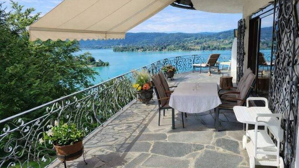 Eingebettet am ruhigen Südufer des Wörthersees, rund 50 Meter über dessen türkisblauer Wasseroberfläche gelegen, präsentiert sich diese außergewöhnliche Villa als ein Rückzugsort von selten gewordener Qualität. Umgeben von Wald, am Ende einer privaten Zufahrt mit altem Baumbestand, öffnet sich der Blick weit, unverbaubar und atemberaubend über den See bis zum Mittagskogel, den Karawanken und der Gerlitzen. Ein Panorama, das zu jeder Tages- und Jahreszeit verzaubert und in den Abendstunden eine garantierte Sunset-Kulisse bietet.