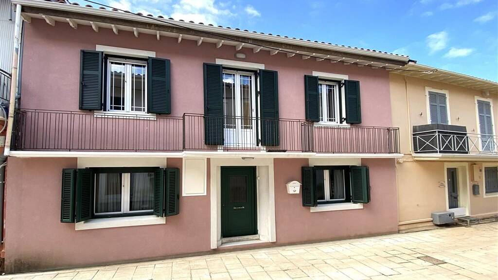 Eingebettet in die "Kantounia" (enge Gassen) der Altstadt von Lefkada zeigt dieses gepflegte Haus die typische Architektur und Ästhetik der Insel. Der zweistöckige Grundriss kombiniert Steinwände und Holzdecken. Die rosafarbene Fassade ist eine Hommage an die traditionell verwendete Farbpalette, die eine bunte Atmosphäre in den Straßen schafft.