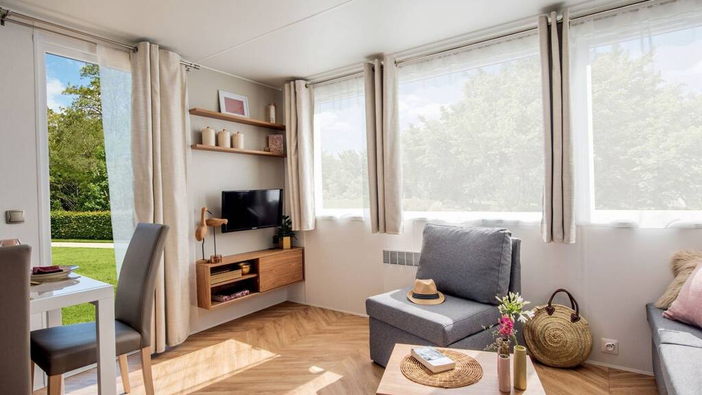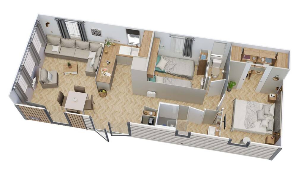 Jetzt der IRM Reve d'ete 2021 jetzt für nur €48.989,- . Dieses gemütliche 4-Personen-Chalet ist für die ganze Familie geeignet! Mit den zwei geräumigen Schlafzimmern, einem Badezimmer, einer separaten Toilette und einem begehbaren Kleiderschrank sind Sie bestens ausgestattet. Jetzt für nur €48.989,- (inkl. MwSt., Transport, Installation, Möbel und Anschluss).