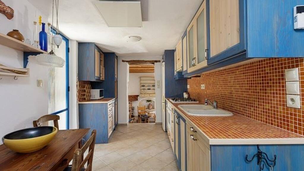 Im Inneren verfügt das Haus über drei geräumige Schlafzimmer und drei moderne Badezimmer, die durchdacht angeordnet sind und sowohl Privatsphäre als auch Funktionalität bieten. Natürliches Licht durchflutet die Innenräume und unterstreicht das geschmackvolle Design und die harmonische Balance zwischen traditionellen Elementen und stilvollen Neuerungen. Von freiliegenden Steinwänden bis hin zu Holzbalkendecken spiegelt jeder Winkel des Hauses den Charme des kretischen Erbes wider, ergänzt durch den Komfort modernen Wohnens.