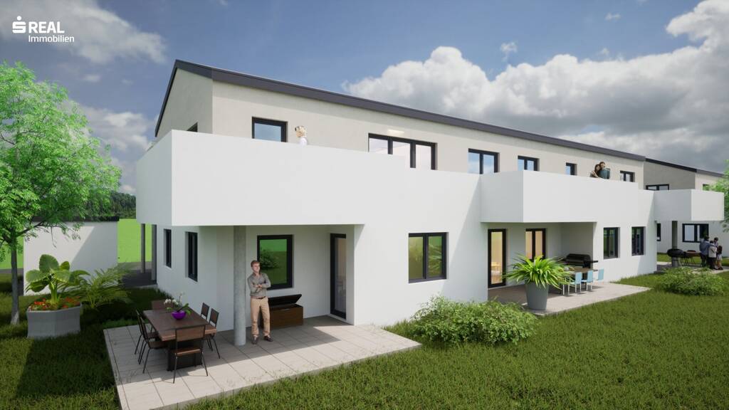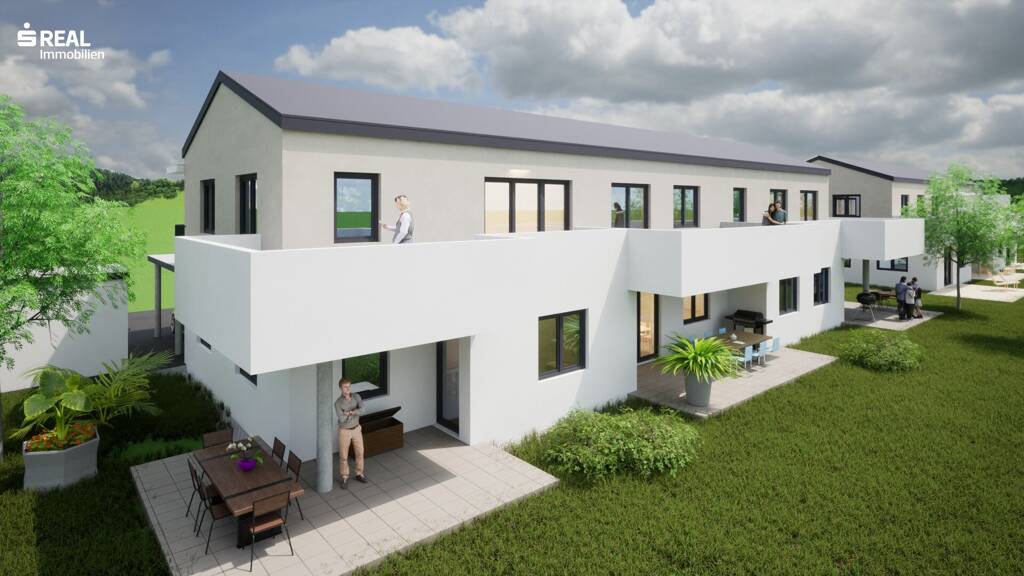 Die südöstlich ausgerichteten Wohnungen bieten entweder eine großzügige Terrasse mit Eigengarten im Erdgeschoß oder einen sonnigen Balkon im Obergeschoß. Alle Einheiten verfügen über durchdachte Grundrisse und hochwertige Ausstattungsmerkmale. Zu jeder Wohnung gehört ein überdachter Autoabstellplatz sowie ein ebenerdiger Abstellraum. Darüber hinaus steht pro Wohneinheit ein eigener Besucherparkplatz zur Verfügung. Die Geschoße des Hauses werden über eine überdachte Außenstiege mit Laubengang erschlossen - funktional und architektonisch ansprechend gelöst.