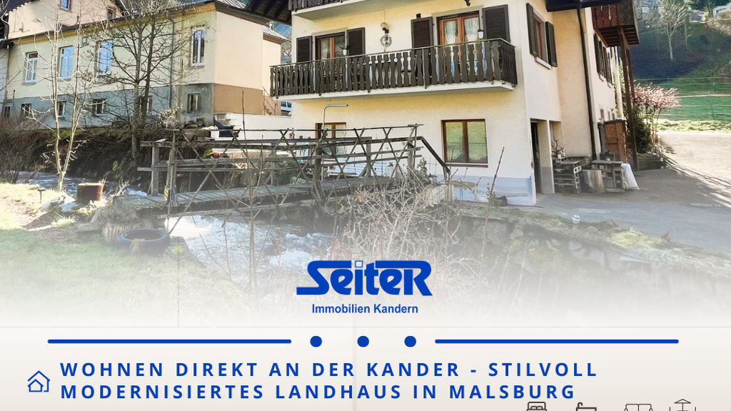 Direkt an der Kander, eingebettet in die natürliche Ruhe des Südschwarzwaldes, liegt dieses besondere Anwesen mit außergewöhnlicher Grundstückssituation und bemerkenswerter Flexibilität. Das ursprünglich im Jahr 1908 erbaute Haus wurde 1980 erweitert und 2017 umfassend modernisiert. Heute präsentiert es sich als großzügiges Einfamilienhaus mit rund 150 m² Wohnfläche.