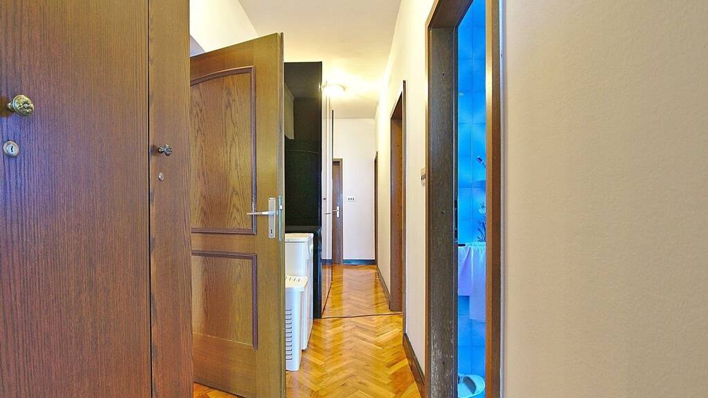 Ein geräumiges Apartment mit toller Aussicht. Das Apartment verfügt über 4 große Schlafzimmer, von denen eines über ein eigenes Badezimmer verfügt. Die Zimmer sind geräumig und verfügen über Tageslicht und einen großen Balkon über die gesamte Länge der Wohnung, von dem aus man einen spektakulären Blick auf die Bucht von Rijeka hat. Das Wohnzimmer ist wirklich groß und wird von einem Kamin dominiert, der an Wintertagen einen zusätzlichen Eindruck hinterlässt, denn beim Knistern des Feuers kann man die Bewegung des Meeres beobachten.