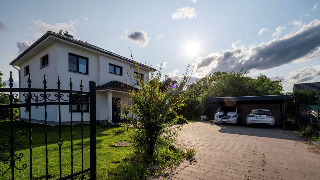 Die Fliesenböden im gesamten Haus sind pflegeleicht und modern. Für Fahrzeuge stehen vier Carport-Stellplätze zur Verfügung. Darüber hinaus verfügt das Haus über Kabel-TV-Anschluss. Die Immobilie ist ab dem 1. Dezember 2025 verfügbar.