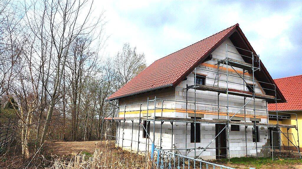 Ausbauhaus in ruhiger Wohnanlage am Ortsrand – Rohbau mit Dach, Fenstern & fast fertiger Garage